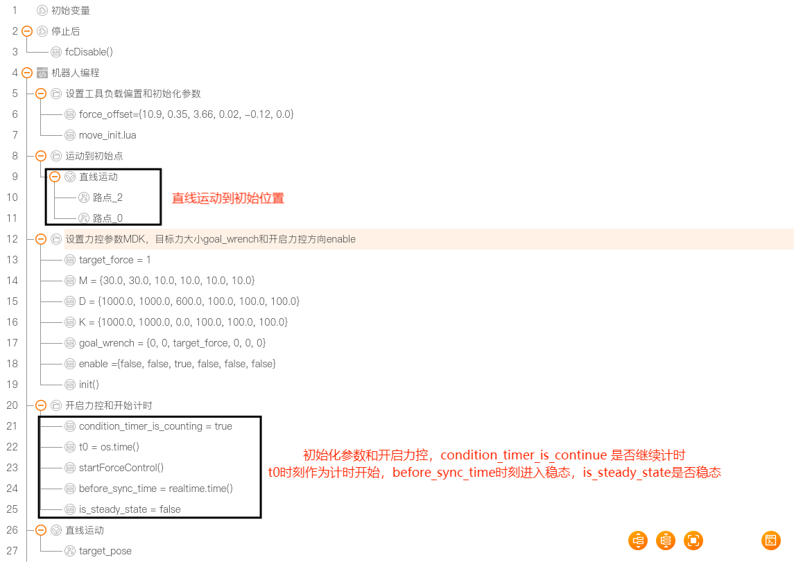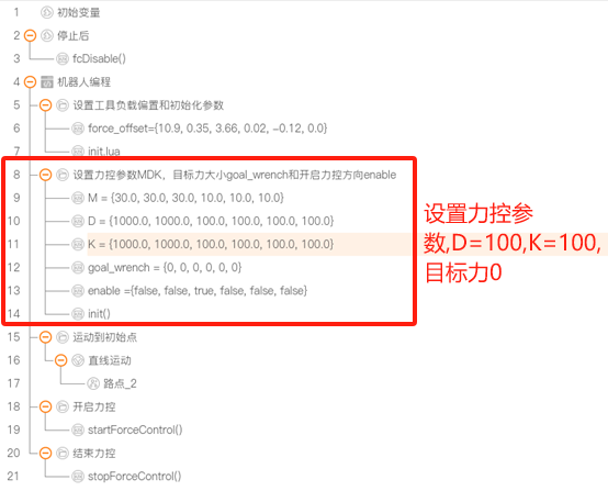 设置了最大力条件,力超过最大限制,满足 isCondFullfiled(),机械臂停止运动。