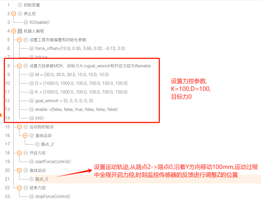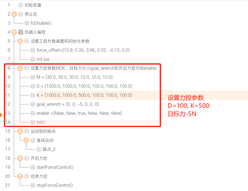 力控主要阻抗控制参数: