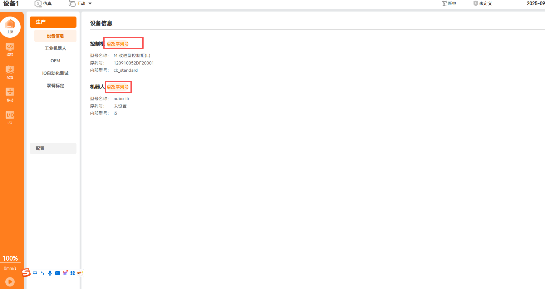 - 注意:机械臂本身没有序列号是不允许进行出厂,请联系相关负责人(工艺联系姜鹏威,产品联系沈阳,研发联系高世奇)进行添加序列号,临时解决办法:强制指定为实际机械臂型号。