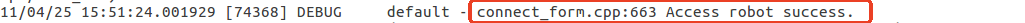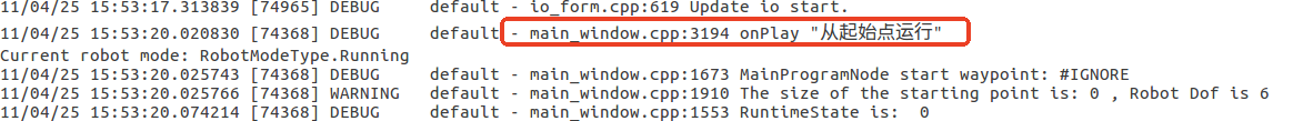 有线示教器界面操作,点击按钮开始运行程序的日志标志如下图所示:
