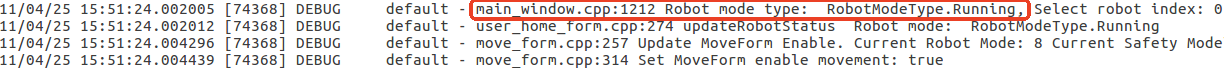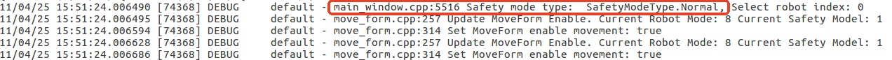 aubo_scope.log 中与RobotModeType、SafetyModeType更新相关的日志如下图所示: